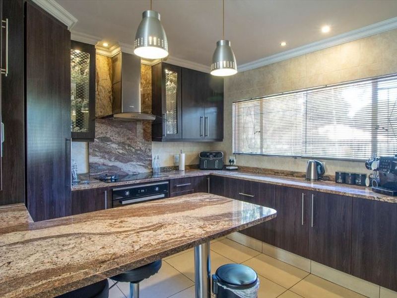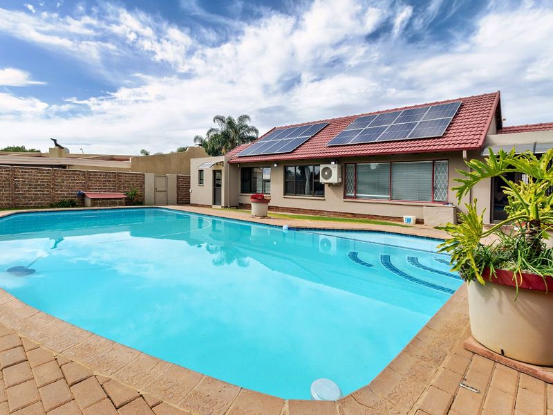 Effortless family living in a prime neighbourhood, with pool and generous entertainment garden, practical modern kitchen with pantry, study, staff quarters, five bedrooms, three bathrooms, three‑car garage.