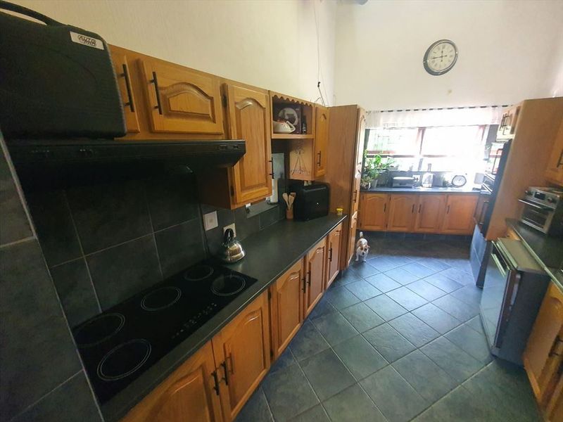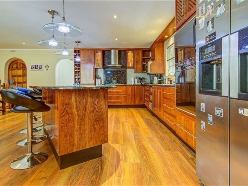 Entertainer's haven for large families in a peaceful suburban setting on a generous 1811 m² plot, with a sparkling pool, pantry-equipped kitchen, five beds, two baths, two garages.