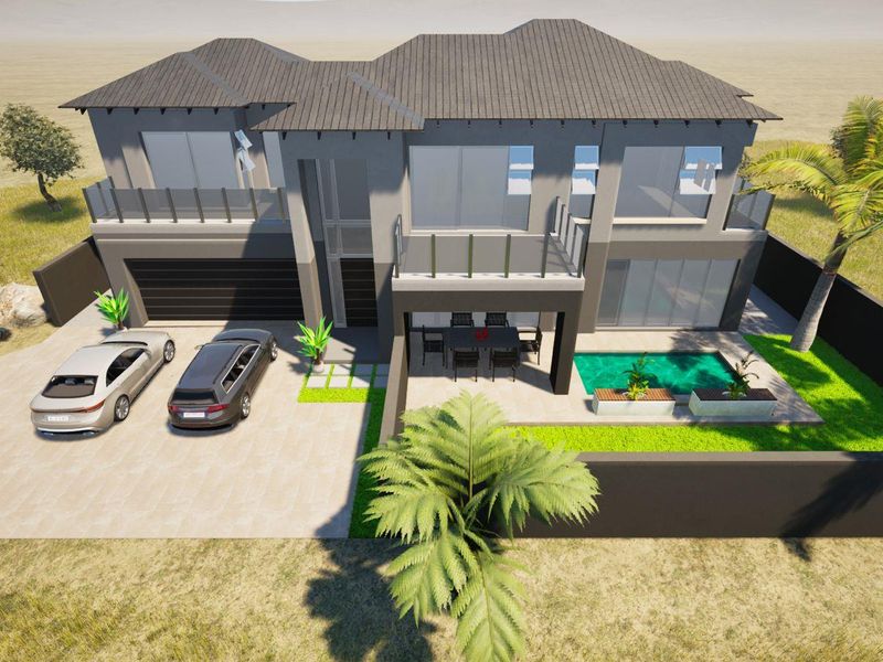 Entertainer's haven on an elevated, view-filled setting — seamless indoor-outdoor living with pool and braai, modern kitchen and private balconies. Five bedrooms, five bathrooms, double garage.