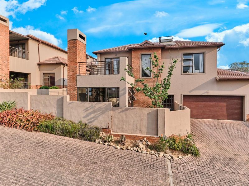 Tranquil Ruimsig Country Estate living within secure Silver Creek complex, featuring open-plan living, an enclosed patio for entertaining, modern gas stove, solar geyser — 3 beds, 2.5 baths, double garage.