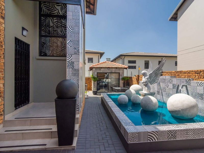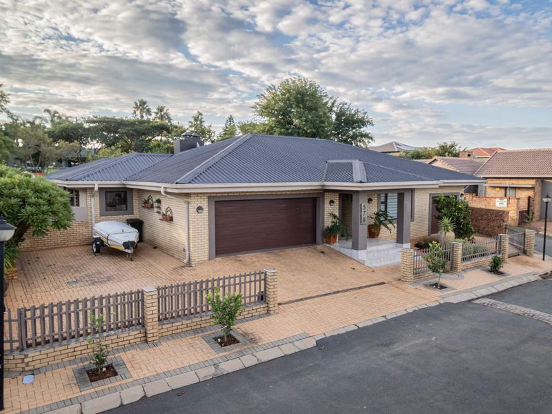 Lock-up-and-go living adjacent to Featherbrooke, with a generous private garden and covered entertainment patio with built-in braai — three bedrooms, two bathrooms and single garage.