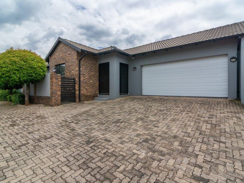 Resort-style living in SilverLeaf Estate, Homes Haven — minutes from Cradlestone Mall and Lanseria. Covered patio with built-in braai and private boma, three beds, three baths, double garage.