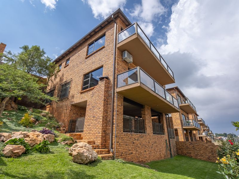 Entertain effortlessly against panoramic views in this three-level townhouse, set in a peaceful elevated neighbourhood; features a private garden and lower-level entertainment area with built-in braai—three bedrooms, three bathrooms.