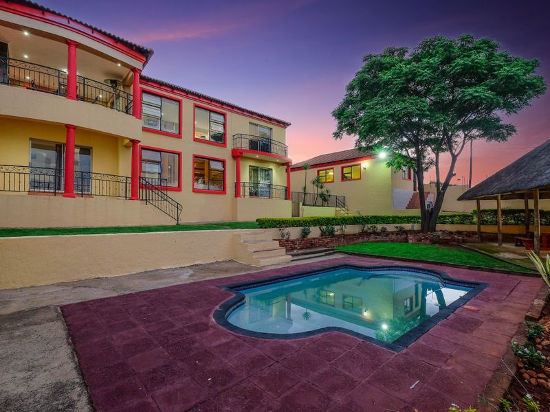 Resort-style entertaining and relaxed family living in prestigious Rangeview, set on manicured grounds with a sparkling pool and thatch lapa for sunset braais; four bedrooms, four bathrooms, extensive garaging.