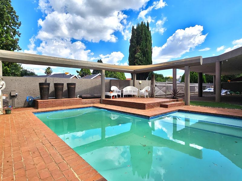 Entertainer's dream in sought-after Midvaal: family-focused outdoor living with sparkling pool, lapa and boma, plus a modern kitchen and four bedrooms, two bathrooms and six covered parking spaces.