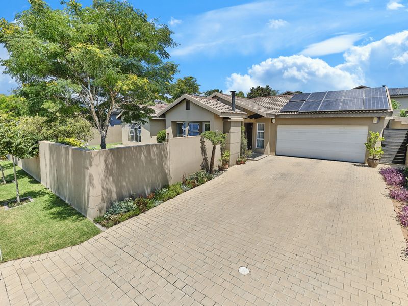 Family-focused living in sought-after Barbeque Downs, moments from Kyalami and Waterfall amenities — expansive patio opening to a private garden with a 1.8m pool.