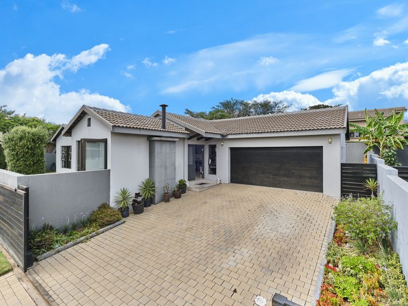 Family-focused living in Woodlands Estate, Barbeque Downs — close to schools and shops. Solar-equipped modern kitchen, private garden and braai area; three bedrooms, 2.5 baths, four covered parking bays.