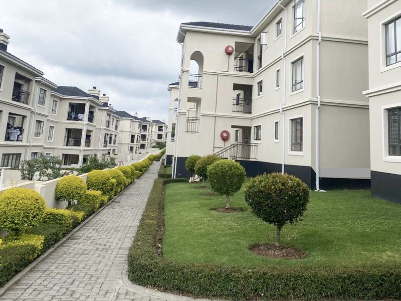Enjoy relaxed, convenient living in Carlswald Estate, Midrand — walking distance to Carlswald Shopping Centre and schools. Furnished two-bedroom, two-bath third-floor apartment with communal pool and braai.