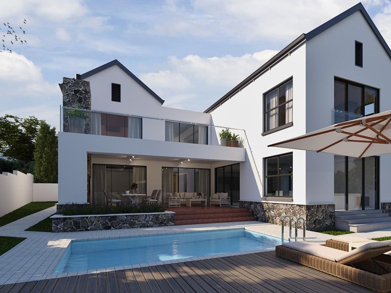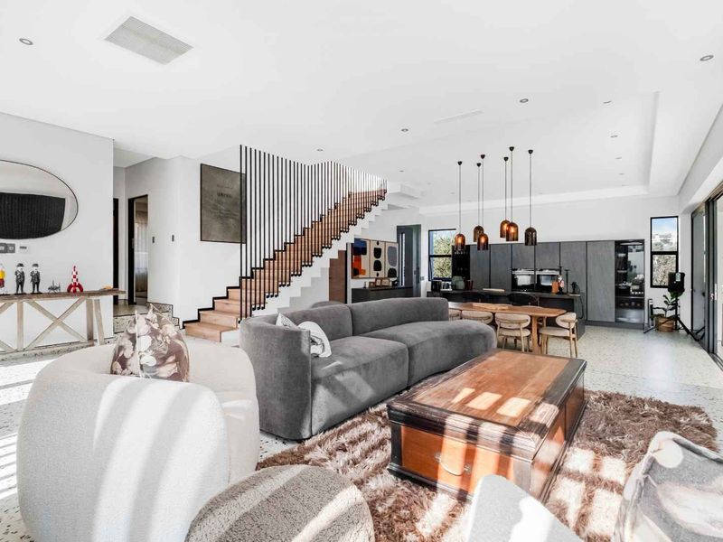 Family-focused living in Helderfontein Estate, minutes from Reddam House — seamless indoor-outdoor flow to enclosed entertainment patio, modern kitchen, five en-suite bedrooms and three automated garages.