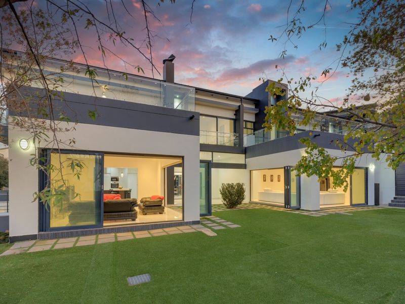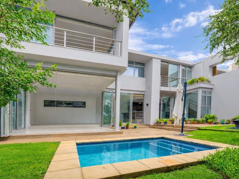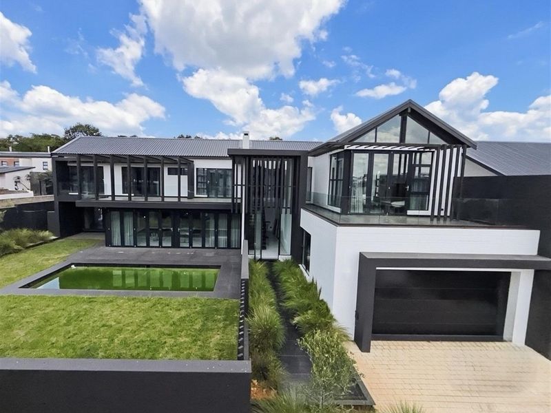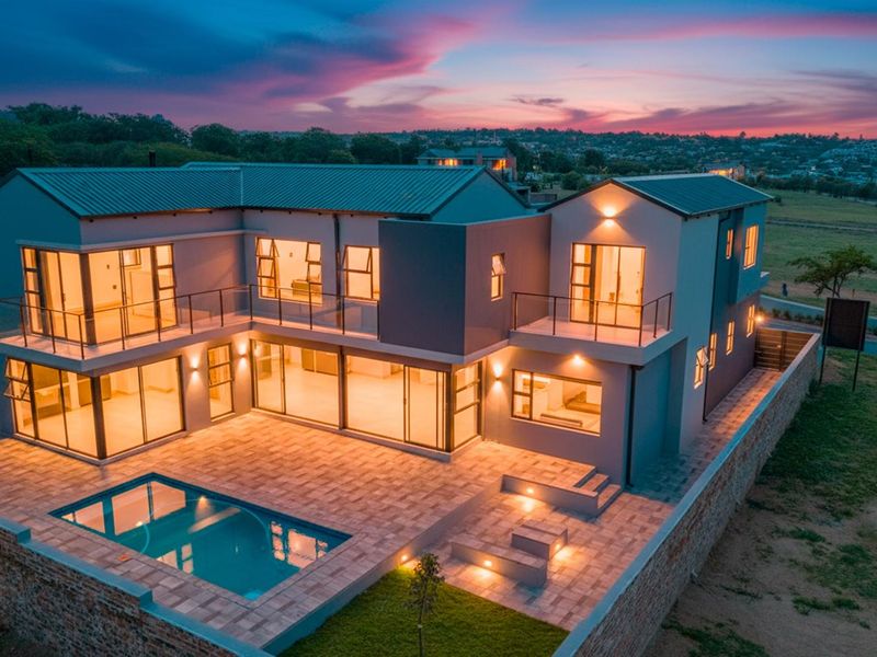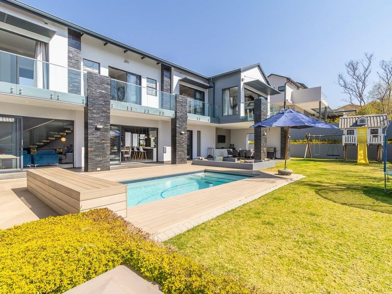 Entertainer's dream in secure Helderfontein Estate with pool, firepit and garden, seamless indoor–outdoor living, private main-suite balcony, plus five bedrooms, five bathrooms and double garage.