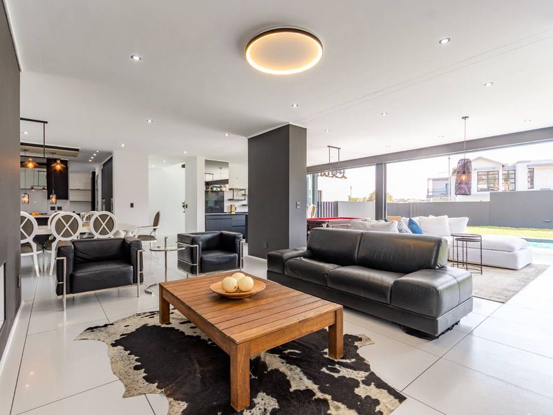 Effortless family living and entertaining in Helderfontein Residential Estate, featuring an entertainer's patio, sleek black-finish kitchen, five en-suite bedrooms and four garages.