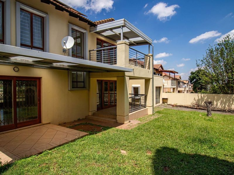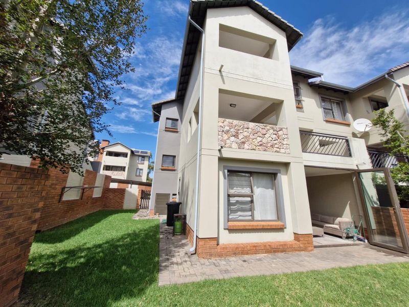 Easy entertainer's lifestyle near shops and schools, with pool and communal play area; enclosed braai balcony and modern kitchen. Three bedrooms, 2.5 baths, double garage.