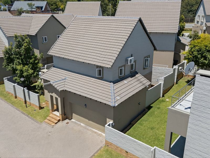 Live in leafy Kyalami Hills near Mall of Africa and Waterfall City, enjoying a private wrap-around garden with koi pond and tiled patios — three bedrooms, two-and-a-half bathrooms, double garage.