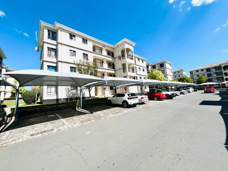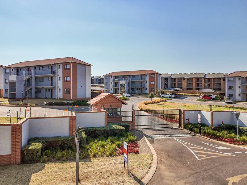 Relaxed estate living in Midrand's Parkland Estate with pool, clubhouse and landscaped gardens; open-plan ground-floor apartment with modern kitchen โ two bedrooms and one bathroom, close to highways.