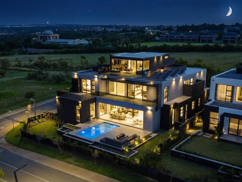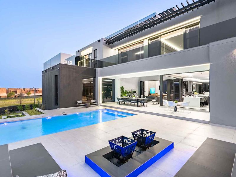 Live effortlessly in Steyn City with refined modern design and seamless indoor‑outdoor entertaining around a covered terrace, pool and custom bar; gourmet Caesarstone kitchen, three en‑suite bedrooms and double garage.