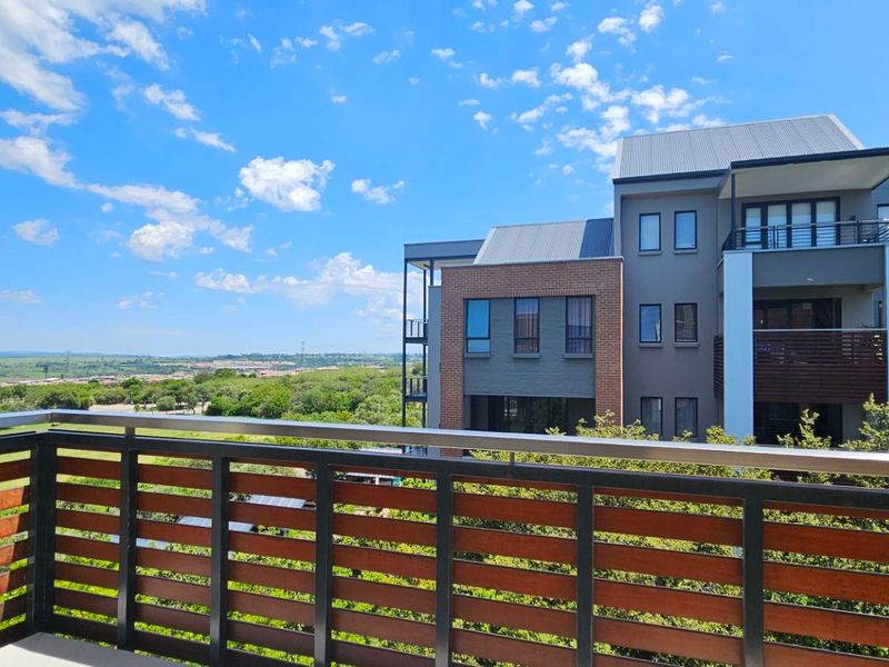 Resort-style Steyn City living steps from the vibrant City Centre — north-facing corner apartment with two balconies for sunset views, Miele kitchen, one bedroom, one bathroom and covered parking.