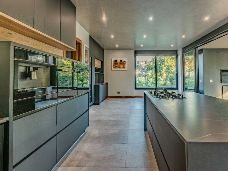 Live beside Steyn City's green belt with double-volume spaces, floor-to-ceiling windows and seamless indoor-outdoor flow to a private pool and boma; four en-suite bedrooms, three garages.