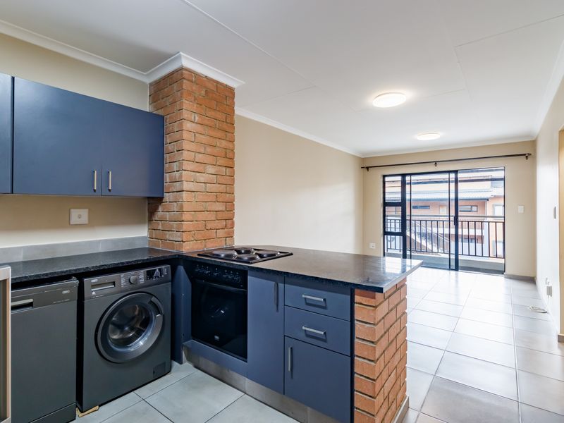Convenient Midrand living with quick access to Mall of Africa and Gautrain; neat open-plan interior flowing to a private balcony, two bedrooms, one bathroom and covered carport.