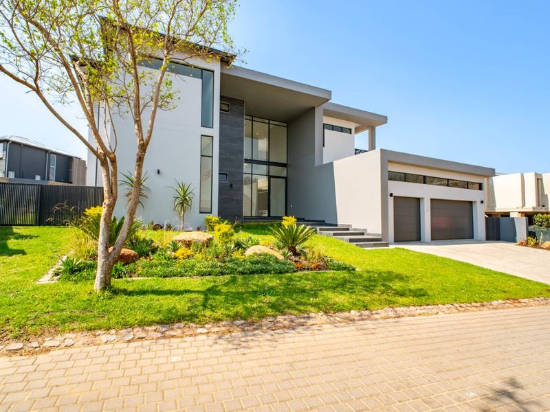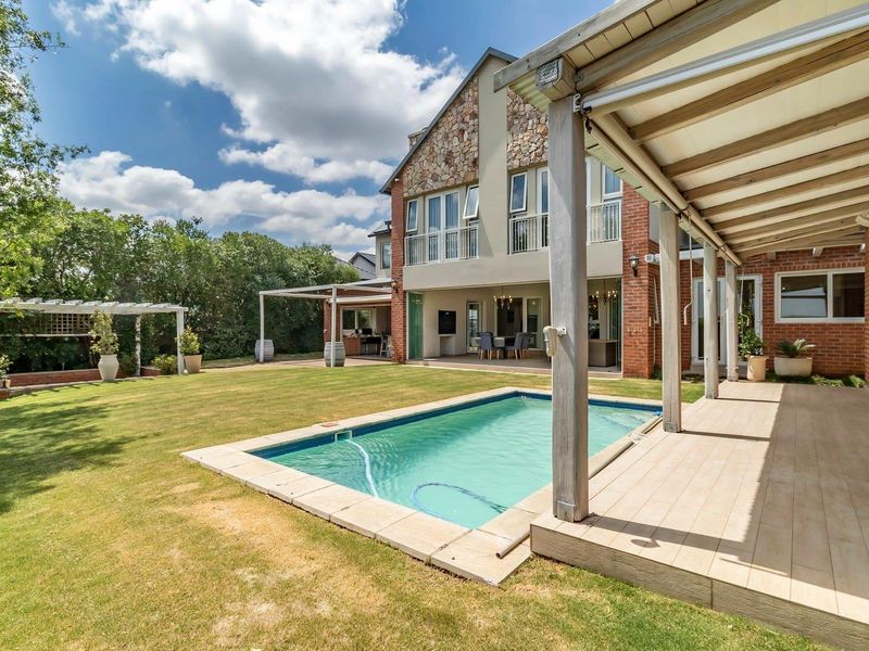 Entertainer's paradise in Waterfall Country Estate Gate 2 — grand entrance, private cinema, gourmet Siemens kitchen with gas stove, pool and braai, expansive master balcony.