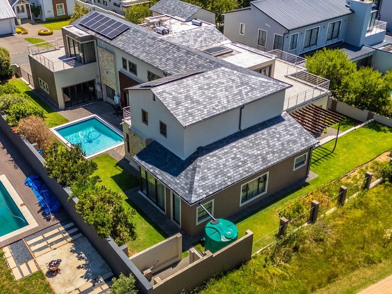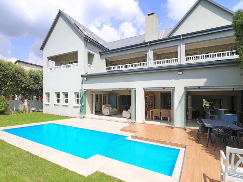 Entertainer's paradise in Gate 6 of Waterfall Country Estate — seamless indoor‑outdoor flow to covered patio and pool, plus an independent 66m² cottage and Reddam School access.