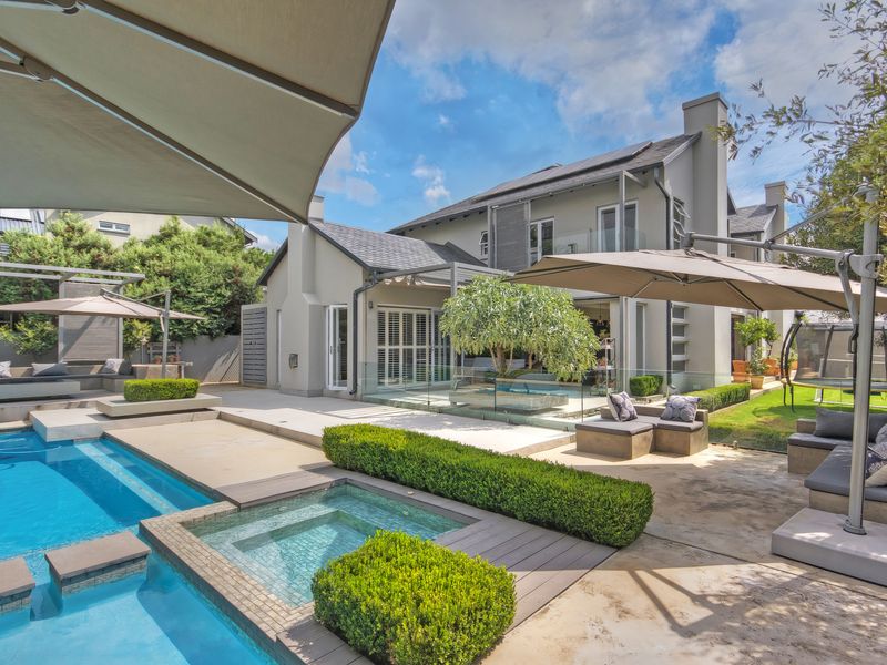 Year-round entertaining in an exclusive leafy neighbourhood, centered on a sunroom with built-in double braai—five bedrooms and 4.5 bathrooms of refined living.