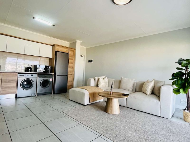 Enjoy effortless modern living steps from the Lifestyle Centre and Mall of Africa, with Scandinavian finishes, north-facing views, landscaped garden and built-in gas braai on the enclosed balcony.