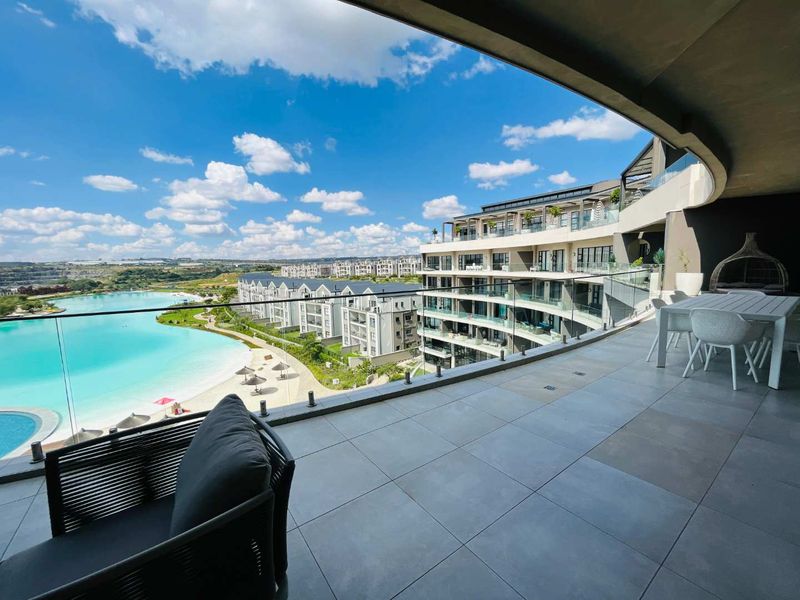 Fully furnished penthouse in Munyaka Estate, Waterfall City — sweeping lagoon views with direct access to the crystal lagoon beach, spa and gym. Three bedrooms, three bathrooms, three parking.
