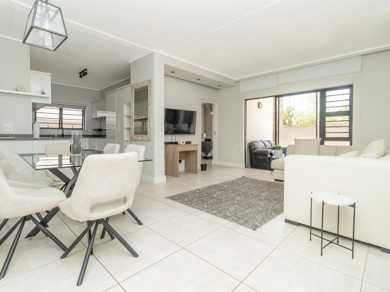 Resort-style living at Polofields Lifestyle Estate, minutes from Mall of Africa and Midrand CBD. Scandinavian finishes and a private landscaped garden — three bedrooms, two bathrooms.