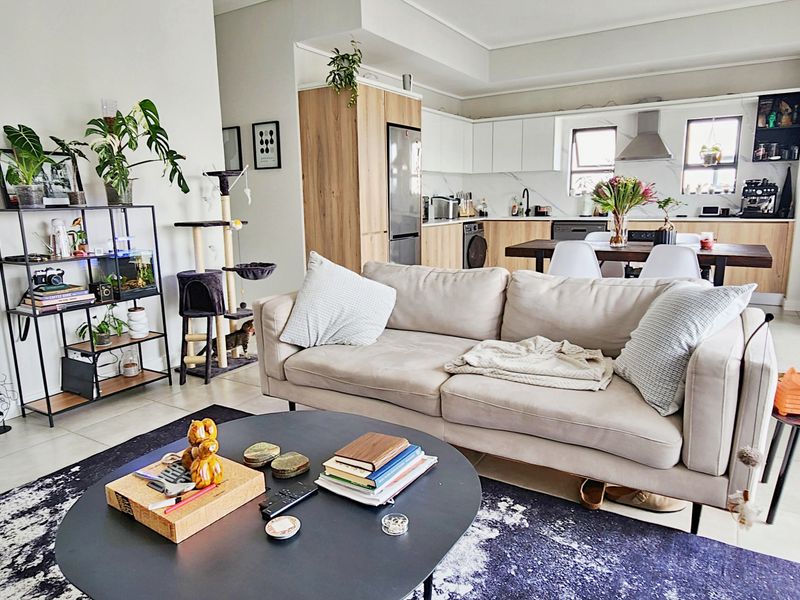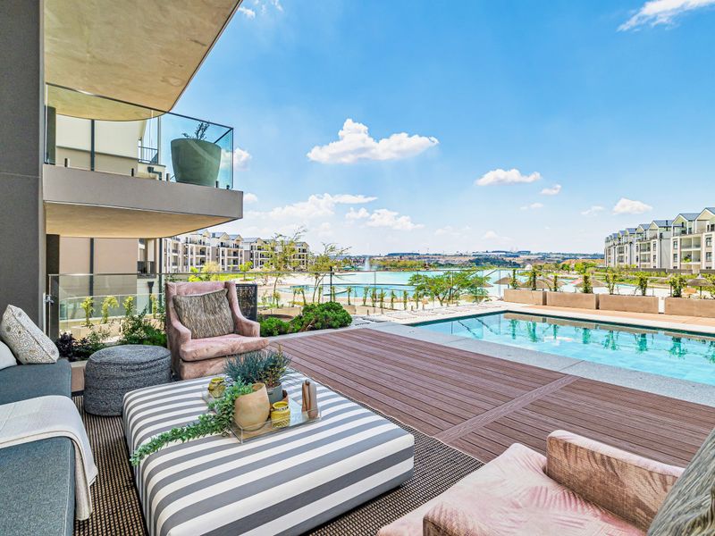 Resort-style living in Divine Munyaka Estate—enjoy crystal-lagoon access, restaurants and Waterfall skyline views from a balcony, plus a modern Defy kitchen and wood-accent living room; two ensuites.