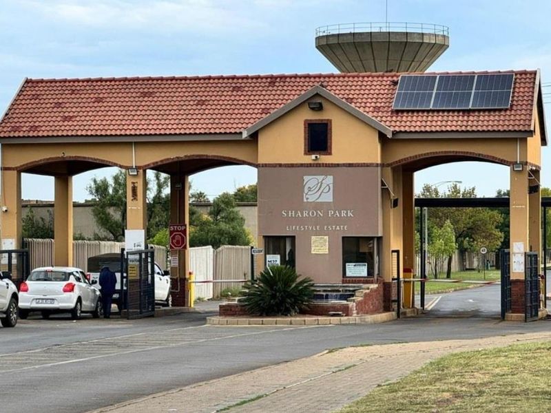 Lifestyle estate living in Sharon Park, Hlanganani — open-plan lounge flows to a spacious yard ideal for entertaining or expansion, with a functional kitchen and three bedrooms, two bathrooms.