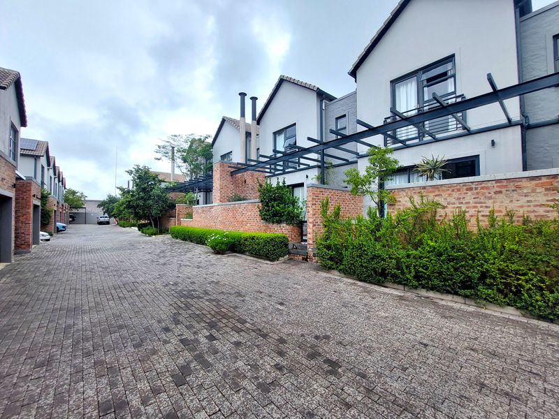 Effortless lock-up-and-go urban living in leafy Brooklyn near Brooklyn Mall and Jacaranda-lined streets, in a secure boutique estate — chef’s kitchen with built-in braai, two en-suite bedrooms, single garage.