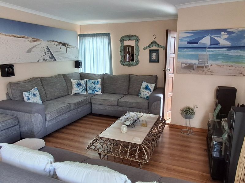 Entertain effortlessly in a manicured garden, with lapa bar and braai plus pool; wooden island kitchen, private study — three beds, two baths, double garage.