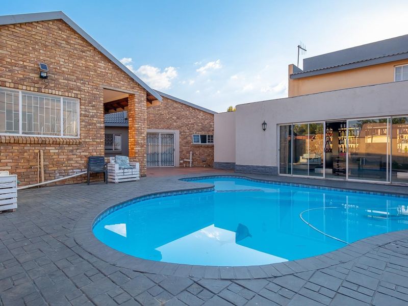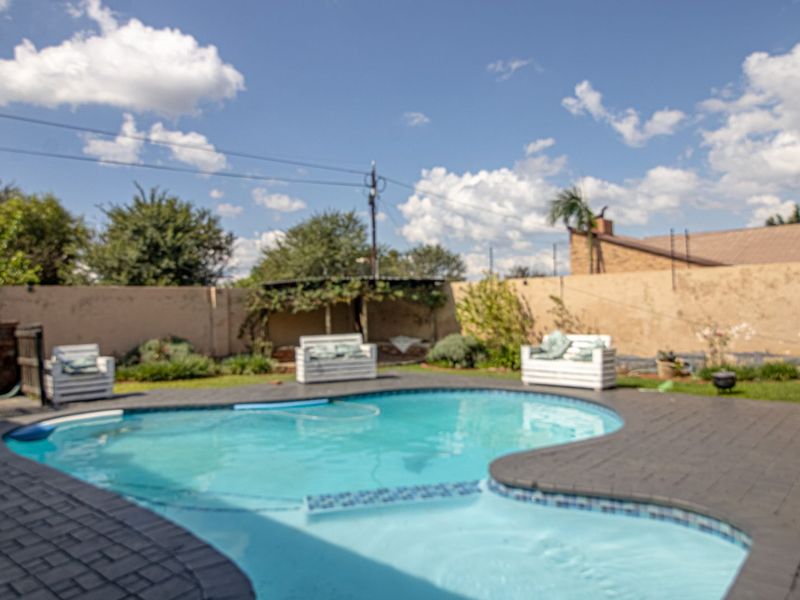 Escape to bushveld calm in a quiet crescent, with alfresco entertaining — braai, pizza oven and pergola overlooking pool, jacuzzi and boma; five bedrooms, three bathrooms, three-car carport.
