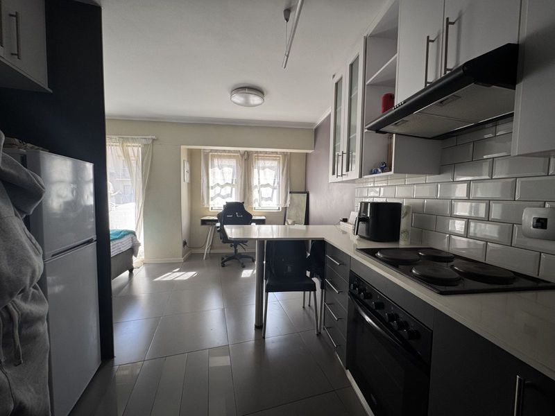 Walk-to-everything student lifestyle near Hatfield Mall and University of Pretoria; secure complex with 24-hour security and communal braai/recreation area, built-in kitchen and one bathroom.