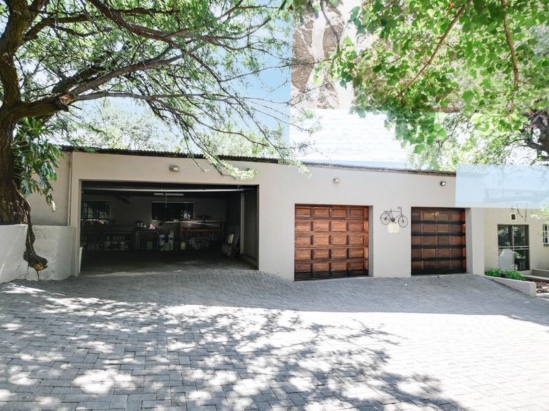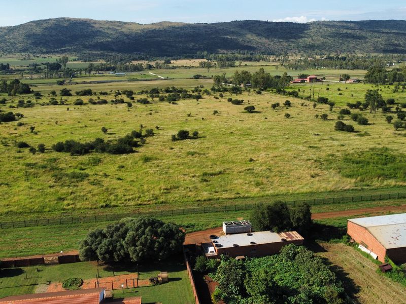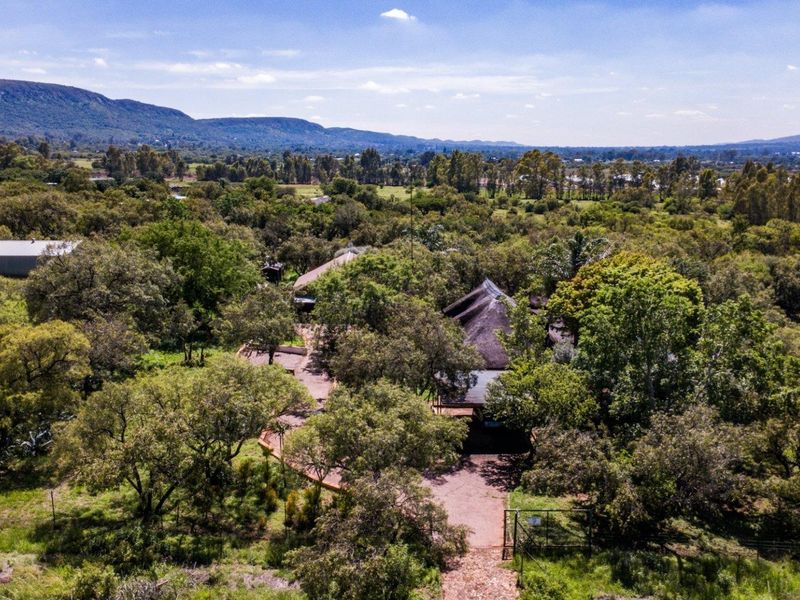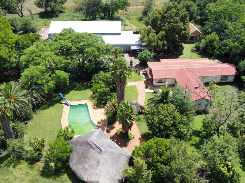 Country smallholding in Magaliesmoot AH, Kameeldrift West on Van der Hoff Road offering multi-generational living and home enterprise — two 4-bedroom homes, flats and a 240m² workshop.