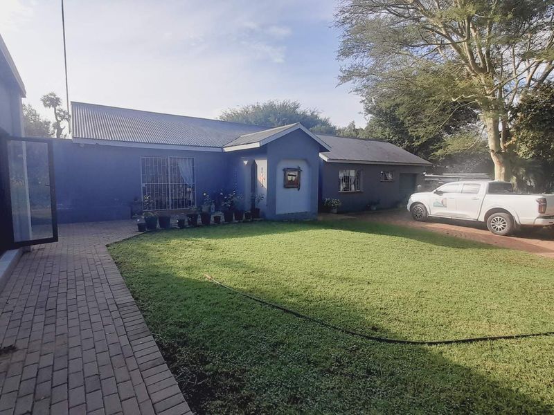 Live, work and earn on 4.2ha with main tar-road frontage for visibility — thatched 3-bed home, 300m2 warehouse and two income-generating bachelor flats.