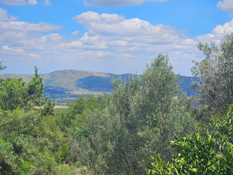 Tranquil Magaliesberg smallholding offering country living with established orchards and panoramic mountain views; main house plus double-storey guest flat—three bedrooms, two bathrooms and extensive outbuildings.