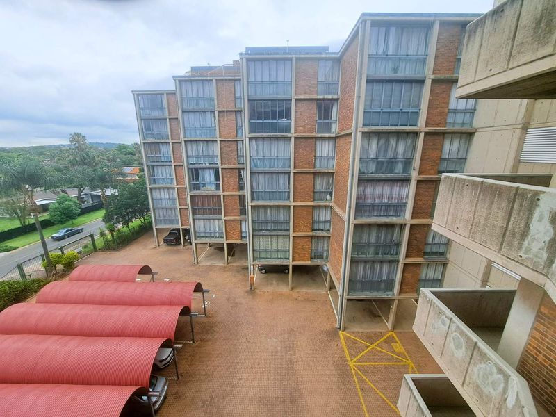 Relaxed community living in the Moot with pool, braai area and manicured gardens; includes two-bedroom, one-bath apartment and a lock-up garage with its own title deed.