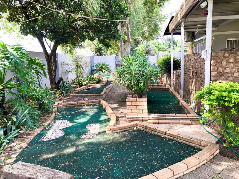 Peaceful family retreat near shops, Eduplex and CR Swart High, featuring a tree-filled walled garden and rustic braai; three-bedroom, two-bath main house with ample parking.