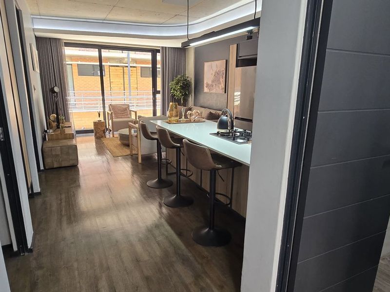 Urban-chic living in Menlo Park with vaulted ceilings, exposed brick and built-in braai; open-plan granite kitchen, two bedrooms, two bathrooms and private entrance.