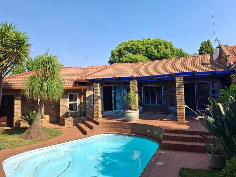 Entertain effortlessly in leafy Moreleta Park with a private pool — five bedrooms, three bathrooms and a double garage offer space and convenience for family living.