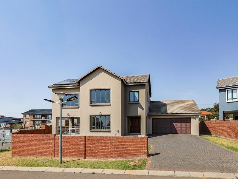 Entertain effortlessly in a sought-after Pretoria East estate, with flowing open-plan living and a built-in braai entertainment area — five bedrooms, five bathrooms, double garage.