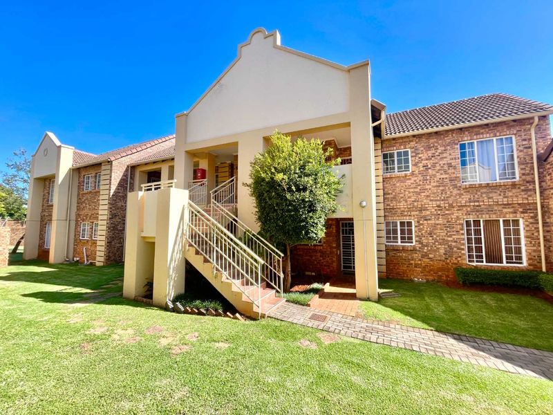 Effortless city living in the heart of Olympus, Pretoria — two-bedroom, one-bath apartment steps from Woodlands Boulevard, Park View Mall and Pretoria East Hospital, with 24-hour access-controlled security.
