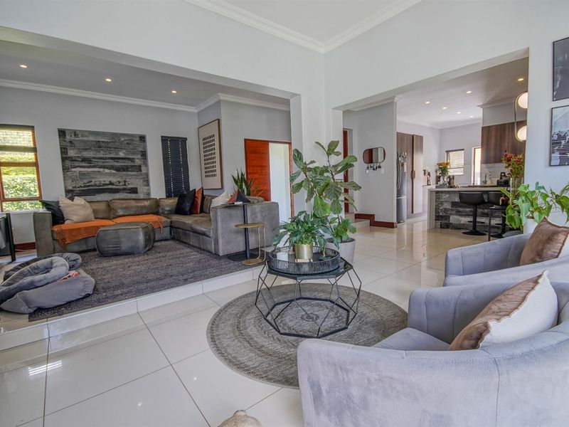 Entertainer's family retreat in tranquil Arathorn Estate, Bronberg, close to nature and top schools; open-plan living flows to private garden with boma. Four ensuite bedrooms, double garage.
