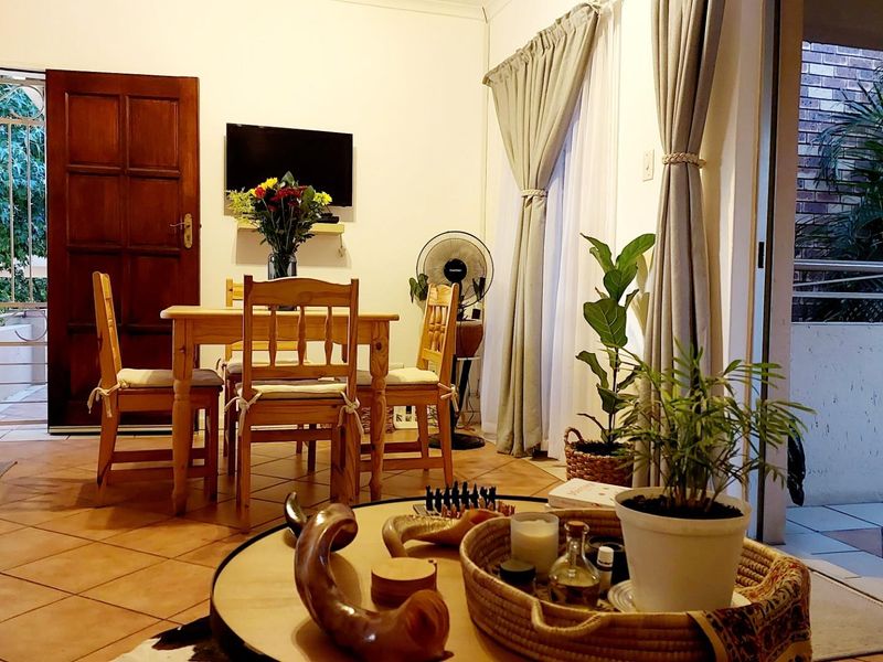 Relaxed lock-up-and-go living in Bergkaree Complex, Pretor-managed and Bidvest-guarded. Open-plan lounge flows to a 'treehouse' stoep; quartz kitchen, two bedrooms, two baths, double garage.