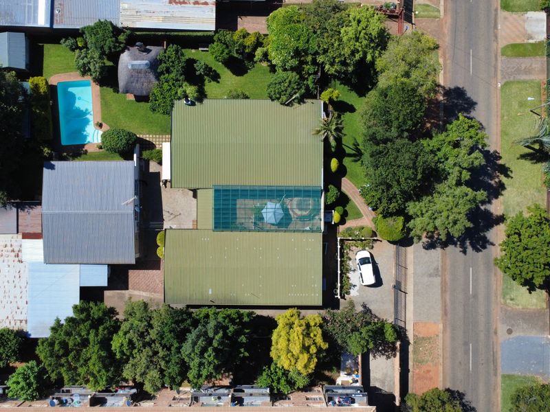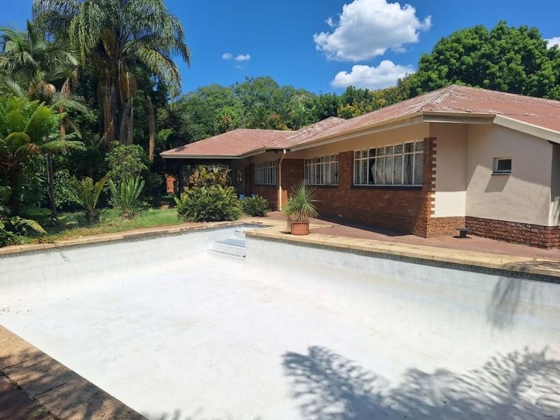 Ideal for family living and entertaining in well-established Pretoria North near Berg Avenue, on a 2552mยฒ stand with extra-large pool, one-bed flat and four bedrooms, two bathrooms.