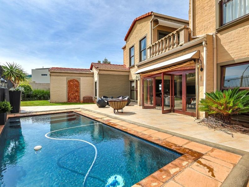 Bushveld living with city convenience in gated Waterkloof Golf Estate, featuring an entertainer's patio with built‑in boma and pool, indigenous gardens, and five bedrooms.