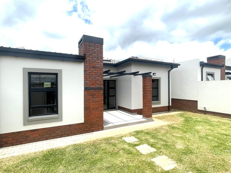 Relax and entertain in a secure, family-friendly complex close to major routes and amenities; covered patio with built-in braai overlooks a low-maintenance garden — three beds, two baths, double garage.