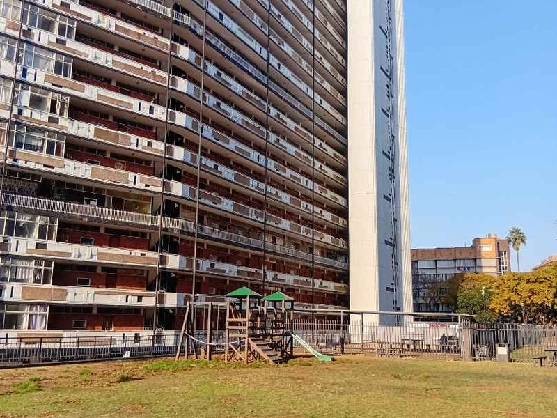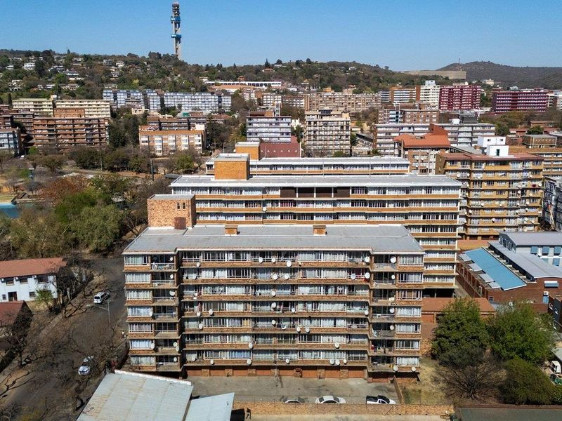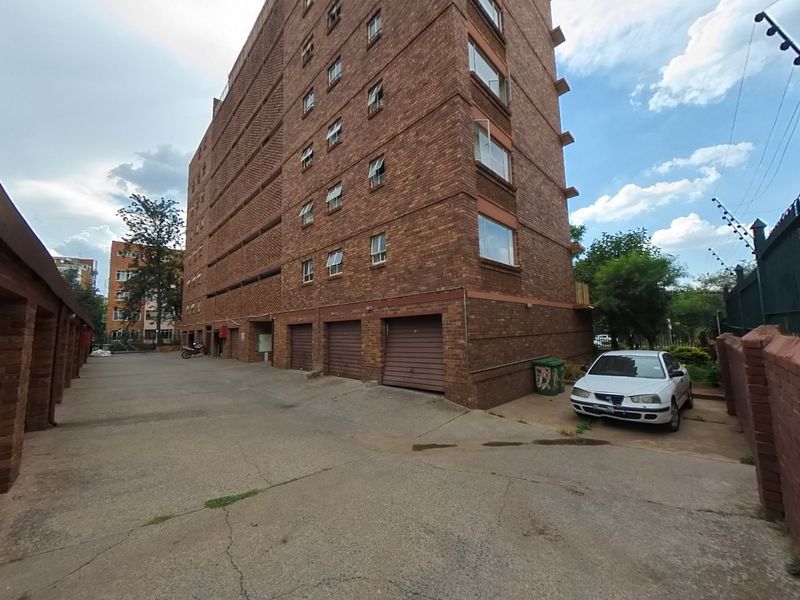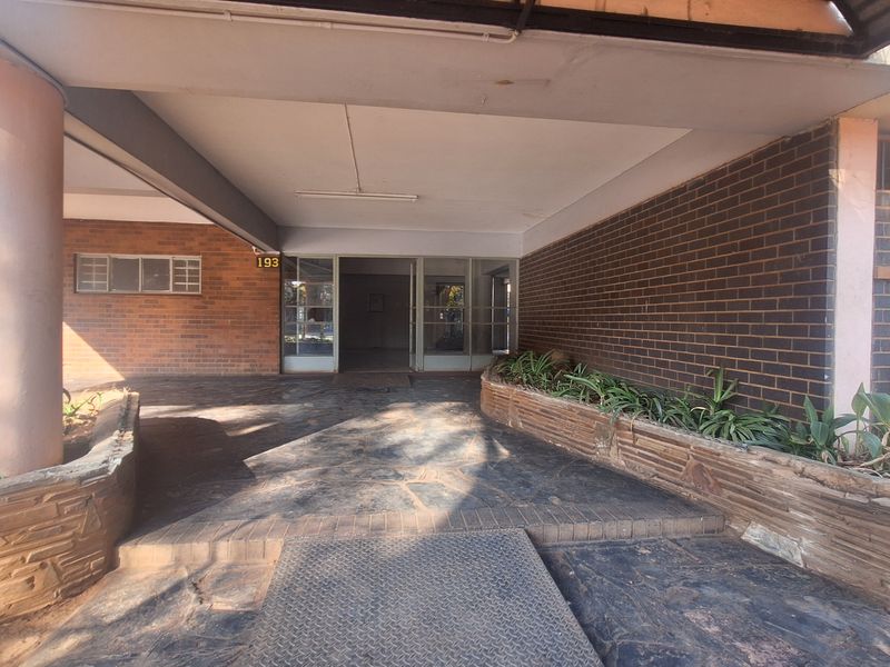 Urban convenience near Sunnyside shops — walkable to Pretoria amenities; bright 1-bed apartment with partitioned study, pool access and 24/7 fingerprint security, plus covered parking.