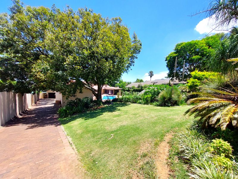 Family entertainer in a peaceful neighborhood on a generous 1,487 m² plot with sunny pool, wrap-around garden, undercover braai patio and double-oven kitchen — 4 beds, 2.5 baths, 3 garages.